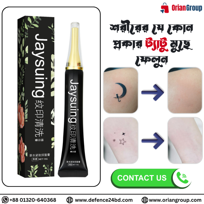 ট্যাটু মুছে দেয়: প্রাকৃতিক উপাদান রয়েছে, আপনার ত্বককে ময়শ্চারাইজ করে এবং ট্যাটুকে বিবর্ণ করে তোলে। দ্রুত শোষণের জন্য
