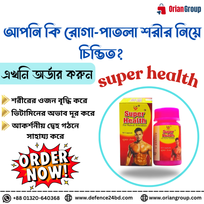 Category: Beauty & Health Tags: Health Capsule, Super Health, Super Health Capsule, অকর্ষনীয় দ্বেহ গঠন করে, ওজন বৃদ্ধি করে